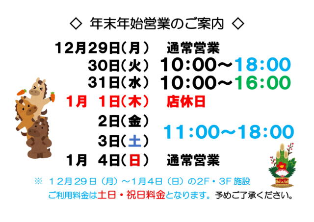 年末年始営業のお知らせ |