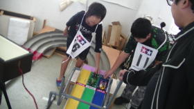 @ MA シャーシ A マッハダッシュモーターPRO B 3.5 : 1 C ギヤ比とモーターの組み合わせを 工夫した。 D 苦労してセッティングしたかいあって 入賞できて良かった。 |